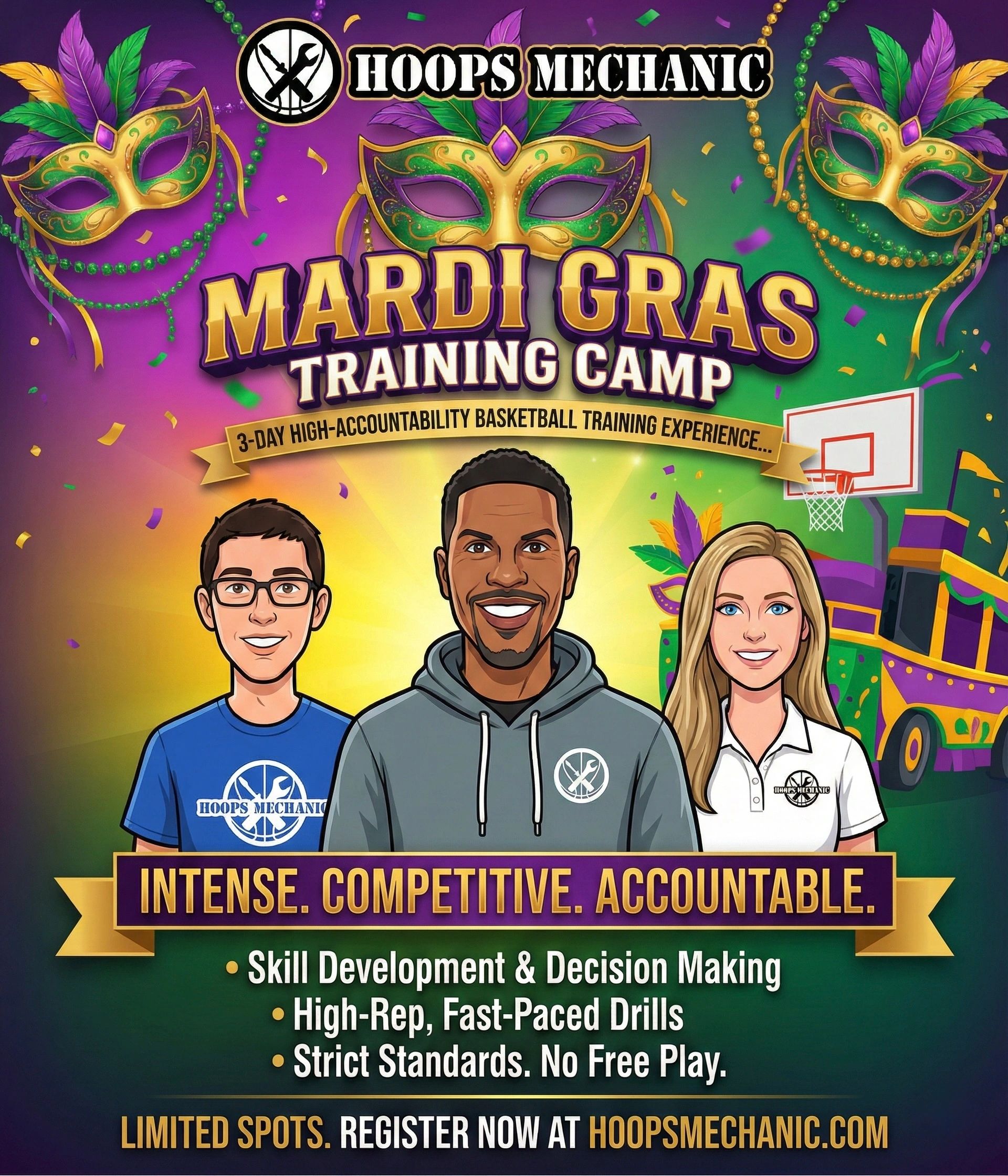The Hoops Mechanic Mardi Gras Training Camp is built for serious athletes who want to improve, be coached, and be challenged.
